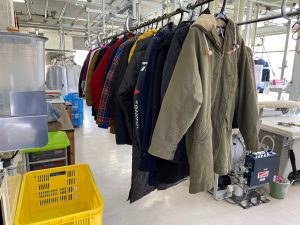 2021/04/24 皆様にご愛顧されて、春のセール第二弾「ゴーゴーSALE」スタート。こういう時こそ、お客様の大切な衣類を扱う現場では、清潔を保つよう、毎日 朝・夕と掃除を徹底しています。とかく疎かになりがちな場所も徹底して行ってから、作業を開始します。工場見学は、土日どちらも10:30より受け付けておりますので、お気軽にお申し込みください。機械の後ろ側もこの通り清潔に保っています。